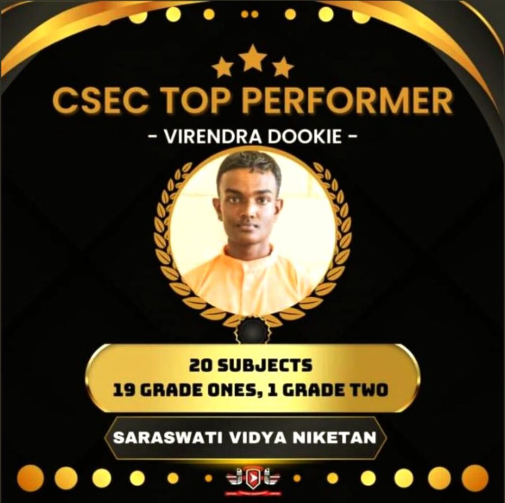 I wish to express how incredibly grateful and elated I am regarding the outstanding CSEC performance of both myself and my fellow SVN students in 2023. These exams were undoubtedly challenging, but our dedication paid off as we upheld SVN’s legacy. I must acknowledge our incredible teachers. Your guidance, unique teaching methods, and unwavering support have shaped us into who we are today. Your teachings, advice, and even the occasional scolding pushed us to excel, and for that, we are forever grateful. To my fellow students, you’ve been an amazing group, and I’ve learned so much from each of you. Thank you all for your support. To my family, your unwavering faith and support mean the world to me.